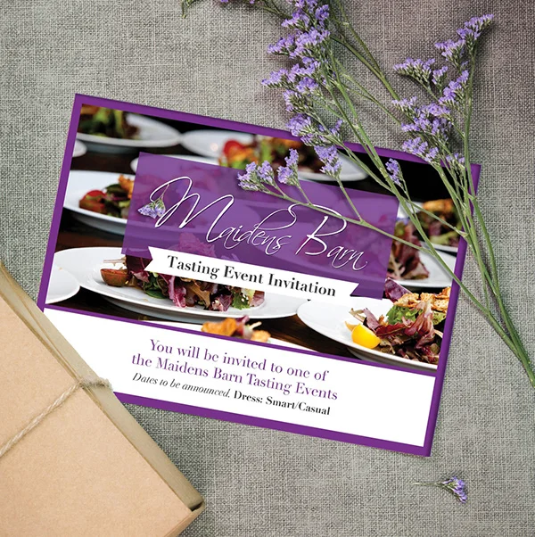 A contemporary and crisp layout contrasts vintage styles for the modern and romantic target audience. Penciled illustrations grace the pages of the brochure inspired by the barn being in the family’s heritage for almost 300 years, while engaging in the handcrafted service Maidens provides. This expansion on the branding has now been used on site in their signage. Images of succulent food and guests enjoying the venue all year around have boosted the business’ extra profit makers and give the reader a taste of what Maidens has to offer.